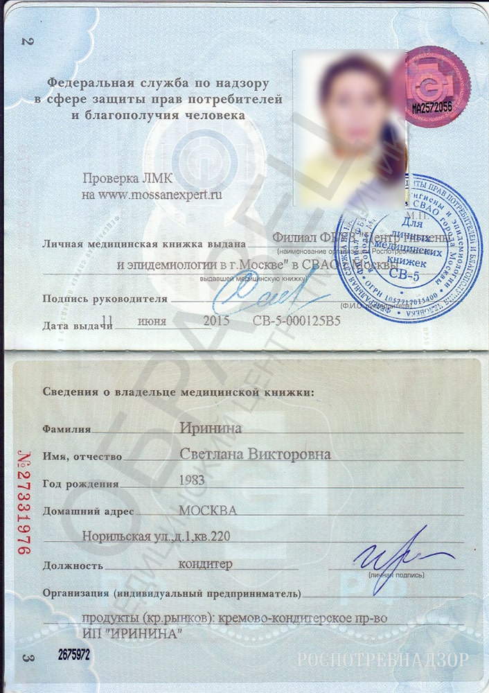 Чистый бланк нельзя приобрести, так как это документ строгой отчетности. Официально заказать медицинскую книжку в Москве можно только в СЭС, уполномоченных Роспотребнадзором медицинских центрах или онлайн.